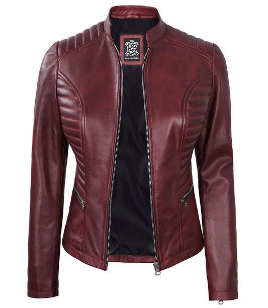 Material: 100% Real Lambskin Leather Internal: Skin Friendly Soft Polyester Lining Color: Maroon Style: Biker...